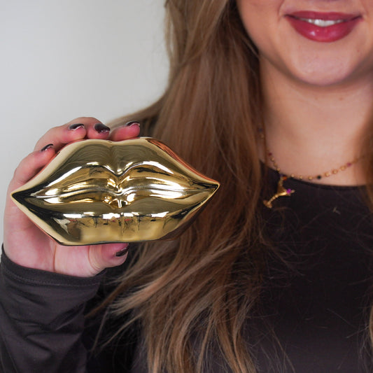 UitverkochtSpaarpot - Lip - Goud -15x8x8cm